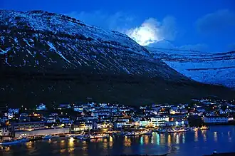 Klaksvík (Danish: Klaksvig) is the main industrial centre of the Faroe Islands, and the hub of the Northern Islands. It's the second largest city in the Faroes, with a population of 5,015 (as of March 2022).