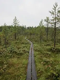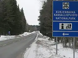 Kurjenrahka National Park in Finland, in Finland Proper, is centred around the raised bog Kurjenrahka ("Crane bog"). Besides bogs and birdlife it features lakes and forests, among them the old-growth Pukkipalo. A large trail network, named after the old border stone Kuhankuono in Kurjenrahka, connects the park with Vaskijärvi nature reserve and centres of Turku, Yläne and other municipalities in the vicinity.