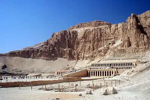 Deir el-Bahari. A complex of mortuary temples and tombs. The first monument built at the site was the mortuary temple of Mentuhotep II, it was constructed during the 15th century BCE. Amenhotep I and Hatshepsut also built extensively at the site.