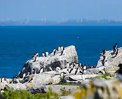 The island is a Canadian Wildlife Service sanctuary and nesting ground for thousands of pairs of Atlantic puffins, a thousand pair of razorbill auk, and hundreds of common murres, as well as a few common and Arctic terns. There are very limited facilities to bring passengers ashore from boats; typically a tour operator will transfer at most 15 passengers at a time onto small craft for landing.