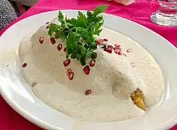 Chiles en nogada, one of the signature dishes of Hostería de Santo Domingo