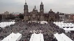• 🌍 Catedral Metropolitana de México (Metropolitan Cathedral) (north side of the Zócalo). Daily 07:00-19:00. The largest cathedral in the American continent. Designed by Claudio de Arcinieaga, construction started in 1537 and lasted for 250 years. Be sure to check out the side chapels where parishioners leave offerings for the various saints. For a bird's-eye view of the plaza, you can take a 40-minute tour (Spanish language only) of the upper levels and bell towers of the cathedral (M$12). Free. OSM directions target=_blank