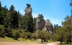 - 🌍 Peñas Cargadas (Loaded Rocks), Carr. Tezoantla al Guajolote km 3.3 (drive past the Panteon Ingles on the road to Tezoantla, then 3.5 km further). Sa-Su 08:00 - 18:00. Small, 3 hectare natural area featuring spectacular basalt rock formations set in a forested area amid pine, oak, and fir. Pack a picnic lunch and plan to spend the day hiking, horseback riding, zip lining, mountain biking, camping, or just sitting and marveling at the magnificent towers of precarious looking rocks.