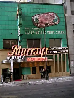- 🌍 Murray's Restaurant and Cocktail, 24 S 6th St (between Hennepin and Nicollet), ☏ +1 612 339-0909. M-F 11AM-2:30PM and 5PM-10PM, Sa Su 5PM-10PM. Murray's opened in 1946 and could be considered to be the best white tablecloth restaurant in Minneapolis, with prices to match. If on a budget, consider eating during lunch when you can enjoy the atmosphere without worrying about breaking the bank. Or go all out and get the 4-pound golden butter knife steak at over $100 and share it with the entire family. $50+.
