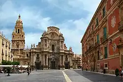 - 🌍 Cathedral of Santa Maria, Plaza del Cardenal Belluga, 1, 30001, ☏ +34 968 21 63 44. Baroque front and Gothic interiors, completed in 1465, with facade and tower from the 18th century.