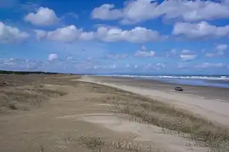 Ninety Mile Beach is a long beach (actually 58 miles or 93 km long) in the Far Far North of New Zealand. Legally a road, it is used for sightseeing trips to Cape Reinga, and the high dunes at Te Paki are used for sandboarding.