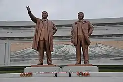 Most, if not all, tour groups to the DPRK are asked to solemnly bow and lay flowers on one or two occasions in front of statues of Kim Il-sung and Kim Jong-il when visiting monuments of national importance. If you are not prepared to do this, you should not visit North Korea. When photographing statues, especially Mansudae, you are required to get the entire statue in the picture. Formal dress is also expected at important monuments such as Mansudae or visiting the Kumsusang Memorial Palace.