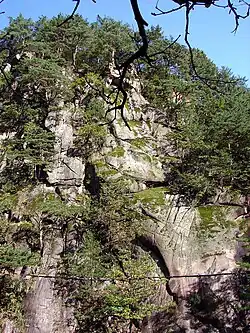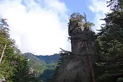 Odae Mountain is at the divergence of Baekdu Mountains and Charyeong Mountains across yeongchanggun, Hongcheon gun and Gangneung city. The name of Odae was given by Jajangyoolsa who was a sainted Buddhist monk during the Silla Dynasty. There are Dongdaesan (Hangul: 동대산, - means the name of small mountain) on the east, Durobong (Hangul: 두로봉, - bong means 'peak of mountain') on the west, Sangwangbong (Hangul: 상왕봉) on the south, Virobong (Hangul: 비로봉) on the north, and Horyeongbong (Hangul: 호령봉) at the center.