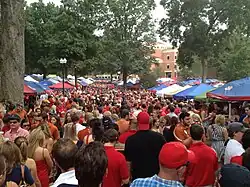 Oxford is very crowded on football game days. Football is a religion here, and fall Saturdays are the sabbath. Therefore, expect heavy traffic, hotels that fill months in advance, and no available reservations at restaurants. The Grove opens for tailgating at 6PM Friday night, but the crowds can overwhelm security as early as 4PM Friday night, and all the good spots in the Grove will be gone by 8PM. Most tailgating is concentrated in the Grove, but it takes place everywhere on campus. The Circle, next to the Grove, has more of a family atmosphere. Officially, liquor but not beer is allowed in the Grove, but all alcohol must be kept in a cup and out of plain view.