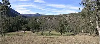 Riverside Rest Area is on the banks of the Apsley River, 50 km east of Walcha and is reached by the Moona Plains Road. The trail beyond Kanagra Vale gate provides public access to Budds Mare and Riverside camping areas. The trail from Budds Mare Rest Area is a steep gravel track and a 4WD with low range is necessary. Trailers are not permitted. Fees apply, a locked gate key and permit are essential to use this trail with a vehicle. Bluff Rock (or The Terrace) walk - 1.5 km, 1 hour, medium difficulty, is reached by heading north-west from the visitor area, across a gully and up the hill to the management trail which leads to the top of the bluff rock, overlooking the river and across to Paradise Rocks. Activities: swimming, hiking, fishing and photography.