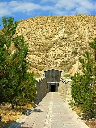 - 🌍 Gordion, Yassıhüyük (from Polatlı take 06-55 towards Ayaş and then follow the signposts. From the west, turn off D200 at the exit for Beylikköprü), ☏ +90 312 638 2188, gordionmuzesi@kultur.gov.tr. Daily 08:30-17:30. This large settlement was the chief city of the Phrygians, and previously a stronghold of the Hittites. It suffered a devastating fire in 800 BC but was rebuilt, only losing its importance under Cimmerian / Persian rule from 540 BC. Its three sites are visited on the same ticket. Gordion Museum is east edge of the village. It displays artifacts from the early Bronze Age through the early Phrygian to Roman periods. Among the latter is a 3rd century floor mosaic found in a nearby village, sized about 50 m2.Midas Mound or the Great Tumulus is across the road from the museum, 50 m tall. Long thought to be the burial chamber of King Midas, it's now believed to be the tomb of his father Gordias. A long tunnel leads into the burial chamber. Huge juniper logs support the tons of dirt above – this part of Anatolia was rich in juniper forests, all but extinct now. Many other burial mounds dot the landscape to the east.Citadel mound (Gordion Kalesi) 1.5 km southwest was the main settlement. After the Cimmerians, it was held awhile by the Lydians expanded from the southwest then the Persians. It was a road stop for the Romans, and occupied into medieval times. Adult 60 TL.