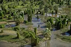Plant life varies depending on the type of landscape. The grassy plains are interrupted by stands of wax palm. While the areas near the river and permanent lakes have a riparian environment dominated by vine-covered tall trees, such as fig and sweetwood. The lakes have clusters of hyacinth and similar floating aquatic plants.