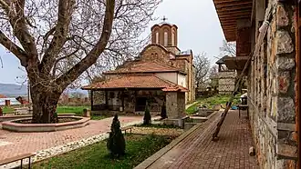 - 🌍 Konče Monastery (Конечки манастир), village of Konče. One of the most significant churches of this region lies within Konče Monastery, within the village of the same name. The Church of St Stefan was built from 1366 to 1371; its frescoes were also originally completed in 1371 though not much remains of the originals. The second painting of frescoes date from the 18th and 19th centuries. Built during the reign of Serbian Emperor Dušan, it is in the Byzantine style with a prominent dome and a covered porch. The church and the grounds are well-maintained with living quarters, a fountain, and a bell tower.