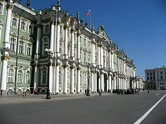 : Admiralteyskaya «Адмиралтейская» 0.6 km S). Tu-Su 10:30–18:00 (W till 21:00). A massive palace-museum showing the highlights of a collection of over 3,000,000 pieces of international art, primarily western European art. Hosted in the Winter Palace, the former main residence of the Russian tsars. The Hermitage is truly one of the world's great museums, with an imposing setting displaying priceless works by Rembrandt, Leonardo, Michelangelo, Rubens and more, including many pieces that were looted from Central and Eastern Europe by the Red Army during World War II. Getting a tour guide is recommended: the additional information they impart can be well worth the price, and they can readily take you directly to the items you want to see. Large bags aren't allowed in the museum, and a massive cloakroom downstairs (no charge, as usual in Russia) exists to assist with jackets and bags. Drinks or liquids are not allowed in the museum after an incident in 1985 when a protester vandalized Danaë, a Rembrandt painting, with sulfuric acid. In some rooms and in all temporary exhibits, photography is prohibited. However, at other times the museum can limit the admission rate because of the numbers already in the museum. In this case having purchased your tickets in advance won't save you as much time. There are also ticket machines just before you get to the cash desk which have much shorter lines. The museum has a cafe and large shop near the entrance, and numerous small shops throughout the galleries. Audio guides are available in English, and most signs in the gallery are in English and Russian. Tickets can be purchased online with accepted forms of payment. Scan the QR code at the stated turnstile for entry. Students of all nationalities get in for free with student photo ID. Entry fee is 500 руб to 700 руб, depending on the museum; free for students of all nationalities with student photo ID; free on the first Thursday of the month. Guide books: 300 руб.