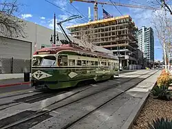 MTS doesn't have a trolley station at the airport. You will first need to catch the MTS Bus for Route 992, described above. Once on the bus, Get off at the Broadway and Park Pl stop, and from there is a very short walk to the City College station. From there you can catch a Orange line or UC San Diego Blue line train 7 days a week, or the Silver line on select days (check the MTS Website to see what days it operates), on a more vintage looking trolley. No matter which trolley you catch, a non-reduced fare will cost $2.50. If you would like to catch the green line you can board either the UC San Diego Blue, Green, or Silver line trolley, and get off at the 12th & Imperial stop, the only MTS Trolley station where all 4 trolley lines run.