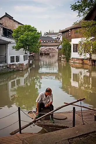 Zhujiajiao (Chinese: 朱家角; Pinyin: Zhūjiājiǎo Zhèn; Zhujiajiao means "Zhu Family Settlement") is a township in the Qingpu District of Shanghai. The population of Zhujiajiao is around 60,000. The town has a very vibrant ancient water village that is the focus of this article.