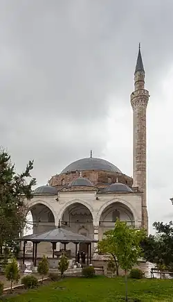 - 🌍 Isa Bey Mosque (Иса-бегова џамија). Built in 1475 by Isa Bey. The unique feature of this mosque is that it has two main domes. The mosque also has a 5 domed porch and a single minaret. The mosque is behind the Čair Hospital across the street from Bit Pazar. In the past, the mosque was a major educational and literary center.