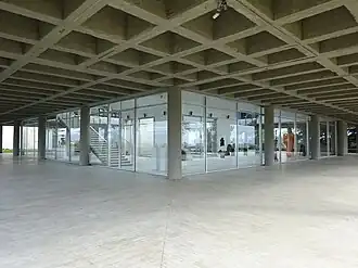 - 🌍 Museum of Contemporary Art (Музеј на современата уметност). Tu-Sa 10:00-17:00, Su 9:00-13:00, closed Mondays; Library M-F 09:00-15:00. The museum has a collection of 4,800 artworks, out of which 1,760 are gifts from artists from 61 countries, including Picasso, Aleshinski, Leze, Sulaz, Lui Can, Hartung, Gaitis, Buri, Millares, Kemeni, Kalder, Vasarely, and others. All these artists donated their works to the city after the earthquake in 1963 for the new art museum. The building itself, in the modern style, is a gift from Poland. Around 1,600 works are from Macedonian artists. With all of this, Skopje actually has the most complete and biggest collection of contemporary art in Southeastern Europe. It sits peacefully on the same hill has the fortress, which also makes it a good place for a view of the city. Free.