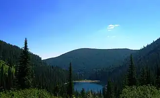- 🌍 Diamond and Cliff Lakes, Forest Road 7843 (take the Southside Road exit off I-90 and take Southside Road south to Dry Creek Road (Forest Route 342); follow Forest Route 342 into the mountains and take a left onto Route 7843; a lot of the route is unpaved). Although the drive to the lake is hard, the views at the top are beautiful and are quite similar to the views at Bouchard Lake. There is a small parking lot at the lake. There is also a larger lake, Cliff Lake, just up the valley from Diamond Lake. The top of the cliff that is near Cliff Lake is the Montana-Idaho border.