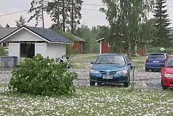 Hail is the falling of solid balls of ice during a thunderstorm. Hailstorms are not very common but are a risk in some areas such as the Canadian Prairies and some regions of Australia. In mid-latitudes and tropical regions, they typically occur in spring or transition from wet to dry season.