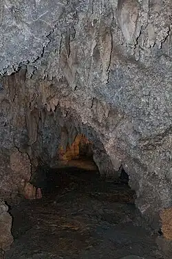 There are many doors in the man-made connecting tunnels of the cave which many visitors may mistake as protection against vandals. While these doors may have the added benefit of stopping determined cave invaders, they were built to serve another purpose. Cave formations are created due to the action of dripping water, and when the man-made tunnels that connect the three cave sections were built they allowed air to flow through the caves, causing the humid interior to dry out and essentially stopping any further growth of the formations that make the cave famous. To fix this problem the park service built doors throughout the cave that, while not airtight, greatly reduce airflow and allow the cave's natural processes to continue. |