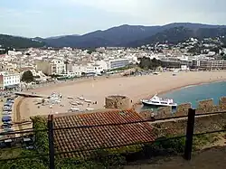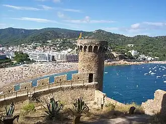 Tossa de Mar is a town of 5,600 people (2018) in the Costa Brava region of Catalonia in Northeastern Spain. Its old town is the only example of a fortified medieval town still standing on the Catalan coast.