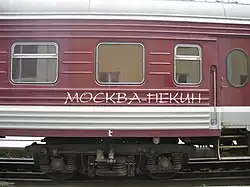The Trans-Manchurian, train 20 (identified as train K20 in China), leaves Moscow at 23:45 each Saturday and is in Beijing at 05:46 the following Saturday. Train 19 (identified as train K19 in China) departs Beijing at 23:00 at Saturday night and is in Moscow at 17:58 on Friday.