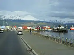 Argentine National Route 3 connects Buenos Aires to Ushuaia, ending at the Tierra del Fuego National Park. Tierra del Fuego is an island, and the route requires crossing into Chile and taking a ferry to cross the Magellan Strait. There are two ferries connecting Tierra del Fuego to the South American mainland: a short crossing at Punta Delgada at the northernmost point of the island and a longer crossing from Punta Arenas in Chile to Porvenir on the island's west coast.