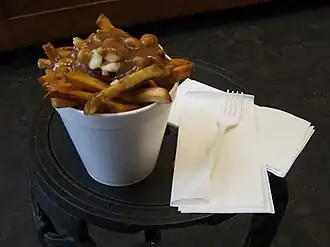 πFritz Frie House,718 Davie St(near Granville),β +1 604-684-0811.This restaurant boasts what one of the best poutines in town. The curds are imported from Quebec. The garlic lover's mayo is fantastic too. Cleverly located next to the local Fitness World. $5 for a medium. Open until the wee hours in the morning, frequented by nightclubbers. Regularly wins local awards for fries.