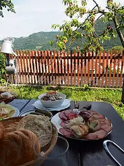 - 🌍 Weingut Hermenegild Mang, Landstraße 38 (Weißenkirchen), ☏ +43 2715 2276, fax: +43 2715 2276 6, astrid.mang@gmx.at. Apr-Oct daily 12:00-; closed Nov-Mar. The family-run vineyard has been operating since 1919, and has won multiple awards for its Grüner Veltliner as well as its Riesling. Their Heuriger serves typical regional cold dishes, with a few vegetarian options. It is situated in a pleasant garden, with a large play area for children, and has extra indoor seating for inclement weather.