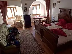 - 🌍 Gästehaus & Heuriger Turm Wachau, Auf der Burg 140, ☏ +43 664 2013850, rosenberger@turm-wachau.at. Check-in: 15:00-18:00, check-out: 08:00-10:00. The comfortable guesthouse also operates a pleasant Heuriger. Free Wi-Fi and nearby parking. €30+ (room), €64 (holiday apt).