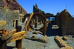 - The ruins of the sulphur factory are scattered throughout the crater.