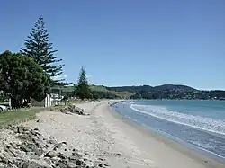 - π Cooks Beach. A 3-km white sand beach suitable for swimming.