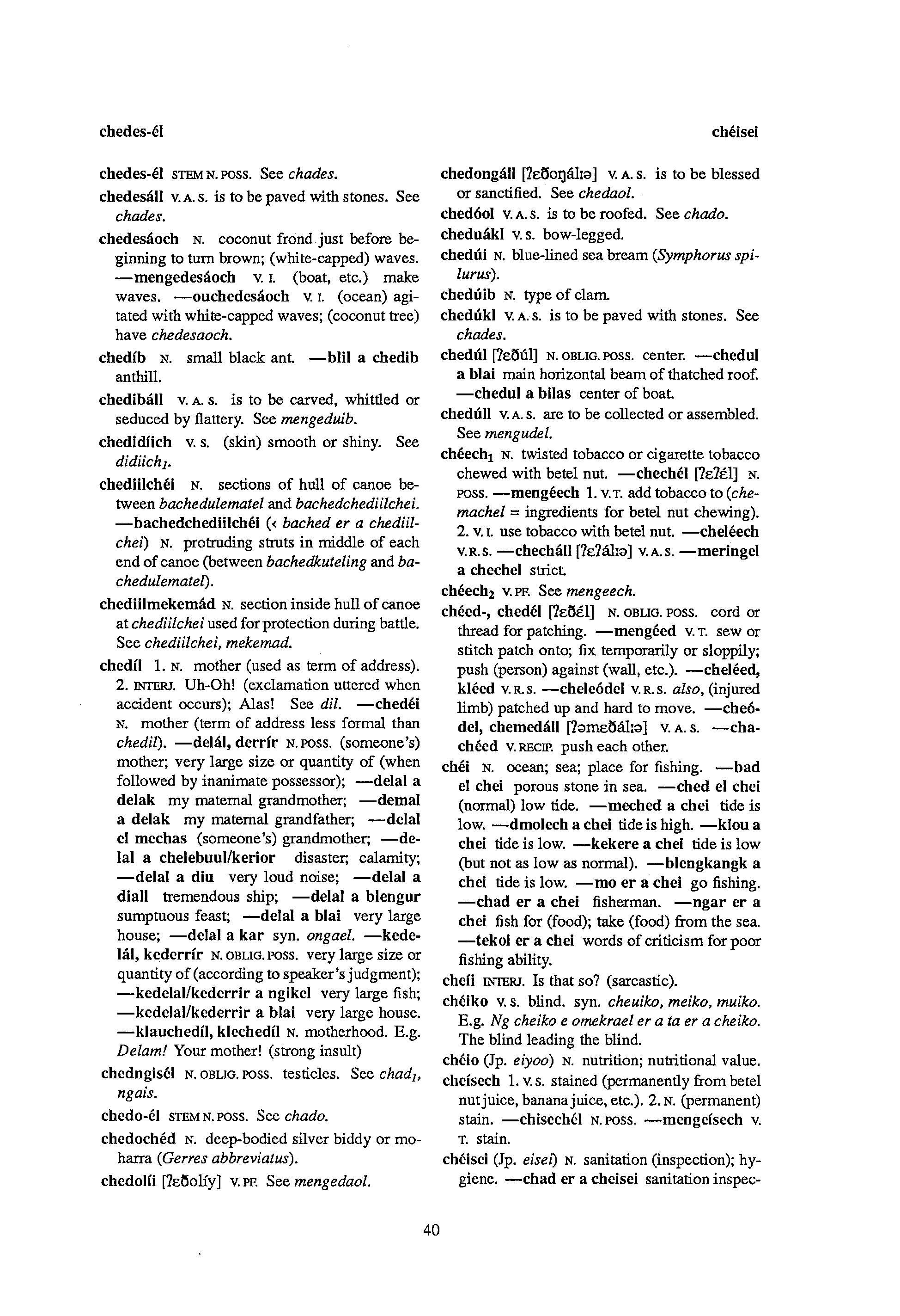 - chedui in Palauan-English Dictionary, at trussel2.com.