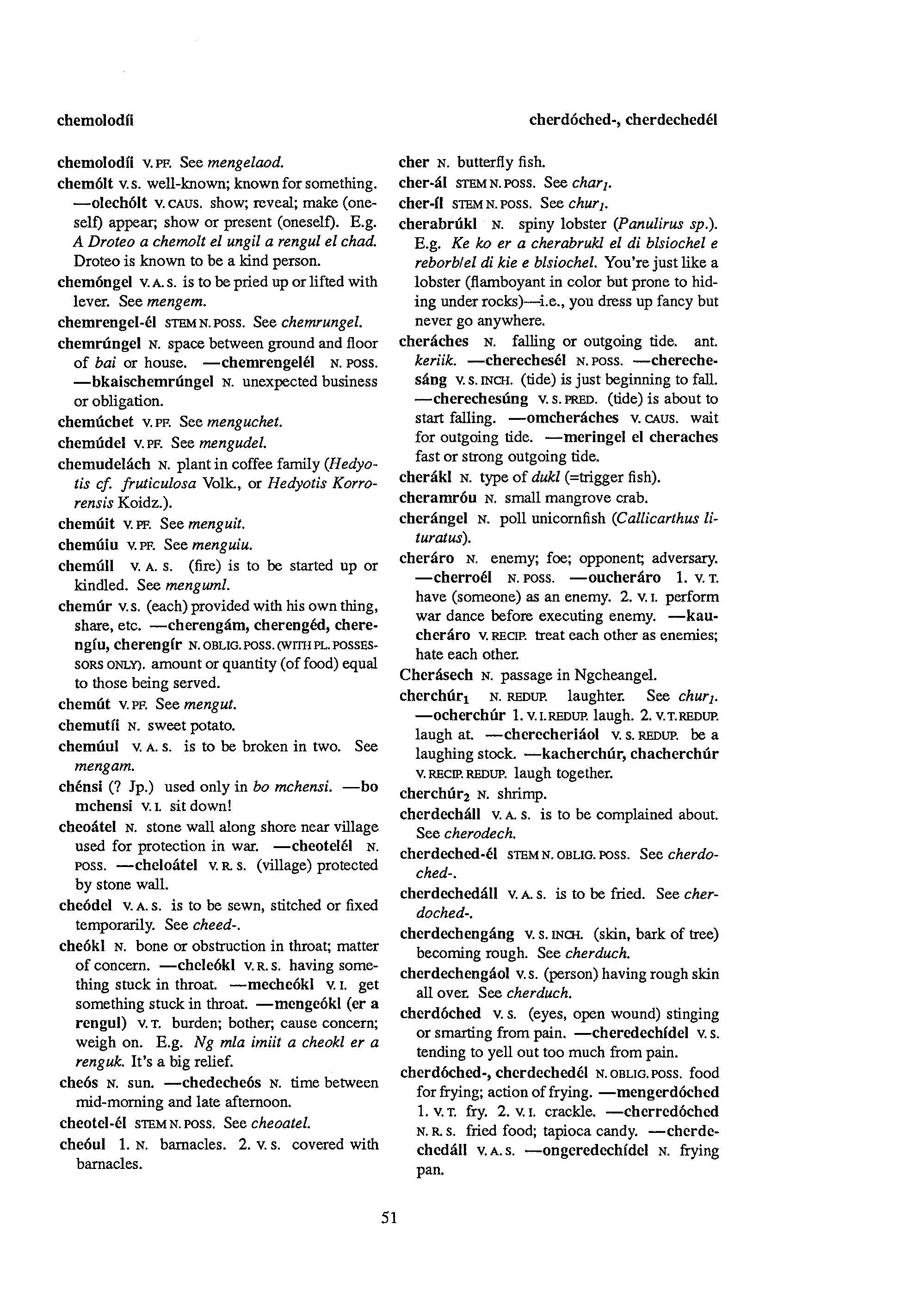 - cheos in Palauan-English Dictionary, at trussel2.com.