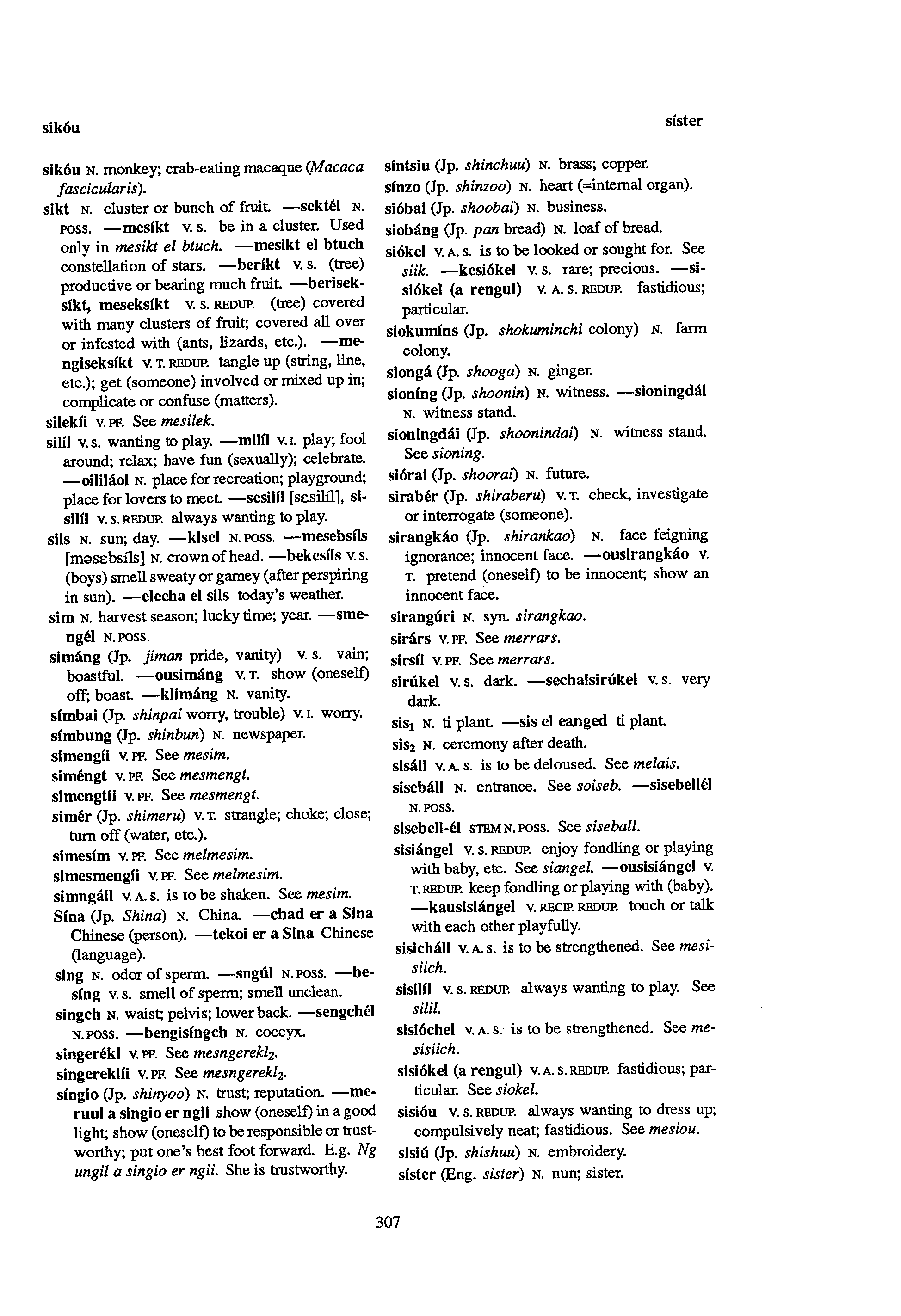- sils in Lewis S. Josephs; Edwin G. McManus; Masa-aki Emesiochel (1977), Palauan-English Dictionary, University Press of Hawaii, →ISBN, page 307.